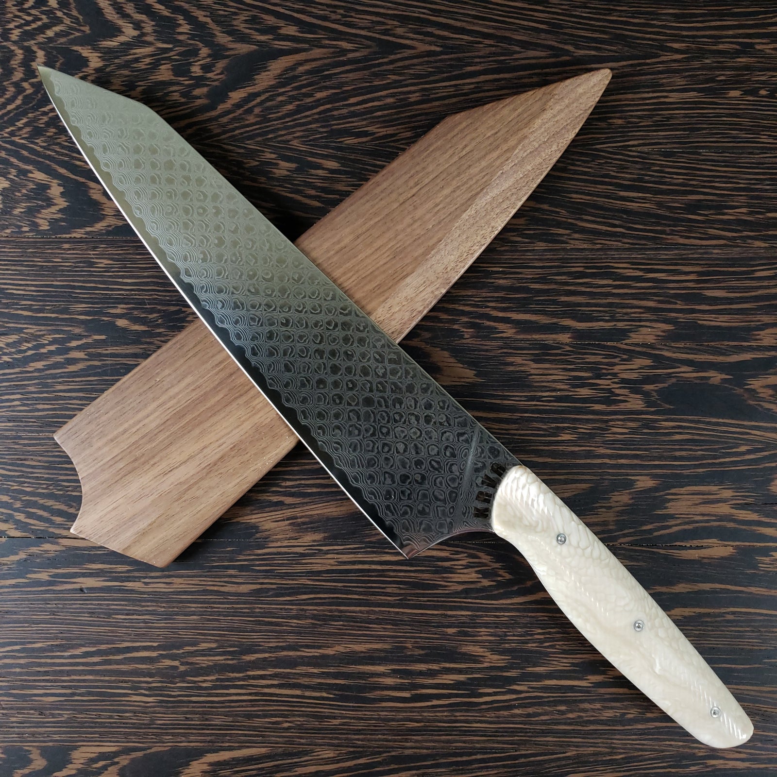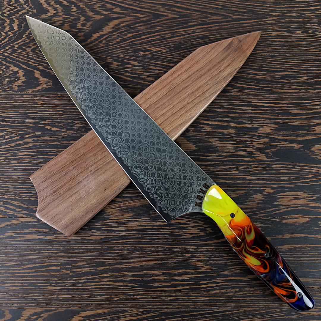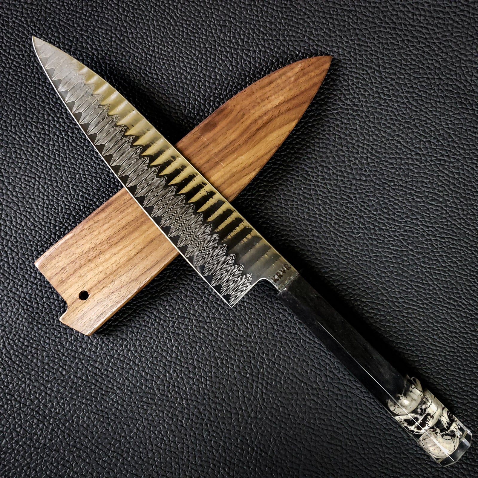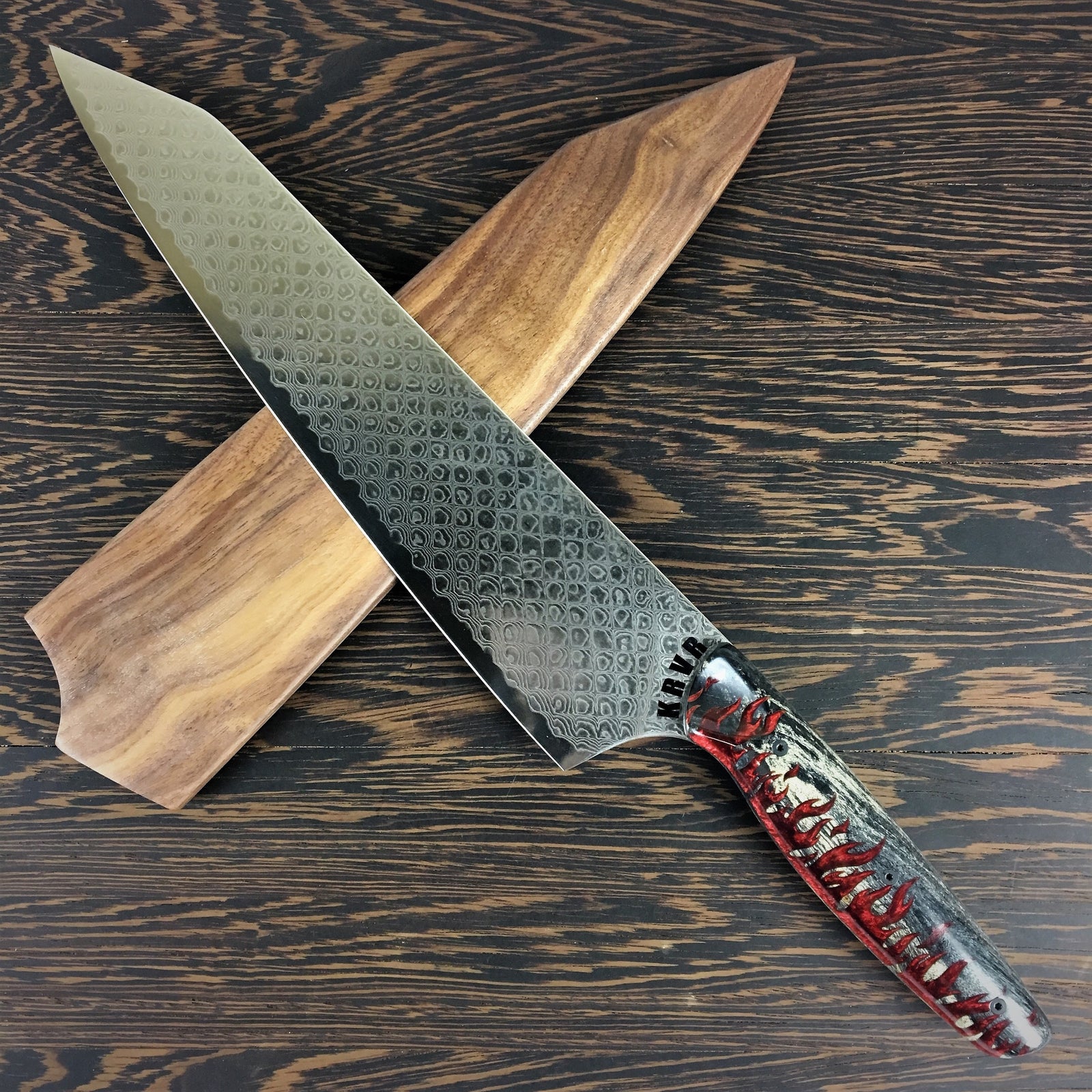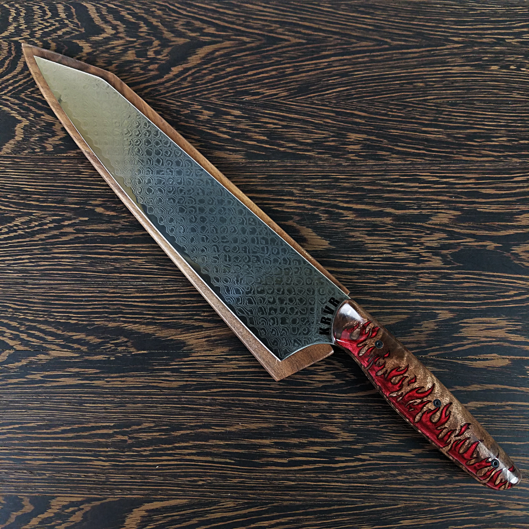 KRVR Dragons started off with my signature dragon skin handles mated to a dragon scale damascus blade. Now it has grown to include several other dragon-themed knives. Please inquire if you see an out of stock design that you like.